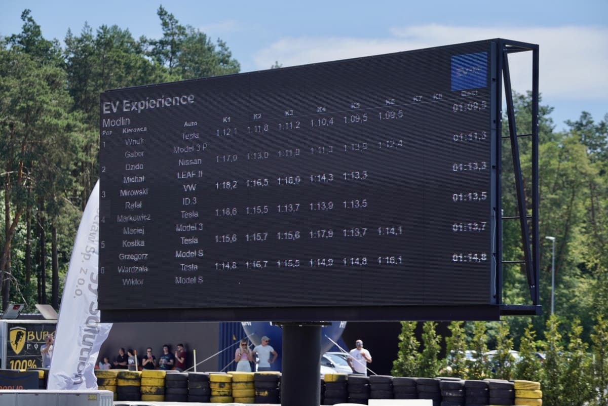 - Jazdy testowe 2 okrążenia, 6 EV, 7 instruktorów, Kolejkowy system zapisów